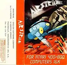 Airstrike is a horizontally scrolling shooter written by Steven A. Riding for the Atari 8-bit family.[1] Having strong similarities to Konami's 1981 Scramble arcade game,[3][4] it was published in 1982 as the first release from UK-based English Software. The company described the game as "Very, very, difficult!" in magazine advertisements,[5] and reviewers agreed with that assessment.