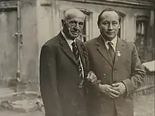 Ayaz İshaki sitting in the middle, Aisa Hakimcan behind him. (Warsaw, 1938).