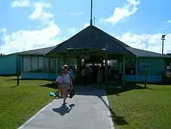 Entrance to Aitutaki Airport. Note the sign "Aitutaki International Airport", although there are no international flights.
