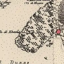 In 1883, the PEF's Survey of Western Palestine found at Khurbet el Khesas "a few heaps of stones with a well near".[11]