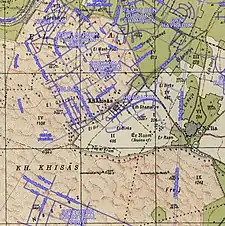 1870s map 1940s map modern map 1940s with modern overlay mapA series of historical maps of the area around Al-Khisas, Gaza (click the buttons) | |