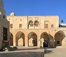 ![]() ʿUthmaniyya, seen from the Haram esh-Sharif, with the double-arched loggia on the top floor. | |
