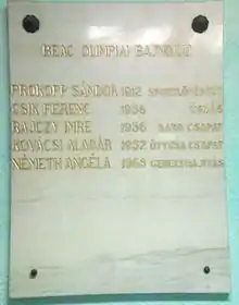 Commemorative plaque of the BEAC olympic champions in Budapest District XI, Bogdánfy Street No 10.