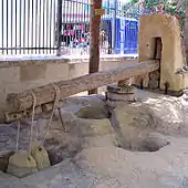 Other is a prominent display in the central hall of an antiquity with an inscription on a stone of grey colour in the Phoenician language dated to 625 BC; also featured is traditional art of the Alanya area of the Yörük people such as bags made of goat's hair, bags attached to the saddle, garments, decorative fabric, cookware, table linen, cutlery, adornments, handwritten documents, writing tools and model room replicating every day life.[6] Additional displays include epigraphy and decorative artifacts of Orthodox Greeks from the Hagios Georgios church of Alanya; an array of exhibits related to navigation, such as a model of a ship loaded with amphorae found from the bed of the Mediterranean sea which were used to transport oil, and a container made of bronze ornamented with a sculpture of the mythical Pegasus.[2]