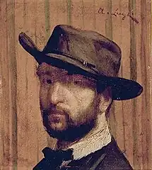He was awarded a scholarship in 1867, and moved to Florence. There, he studied with Enrico Pollastrini, professor at the Academy of Fine Arts, who stressed copying the Old Masters to develop skill.[1] This led to his adopting a style known as "pittura di macchia" (stain painting), practiced by a group called the Macchiaioli, involving broad and thick brushstrokes.