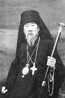 The Albazinians formed a separate contingent of the imperial guard, known as the "unit of the yellow-stripe standard". Their first leader was Ananiy Uruslanov or Ulangeri, a Tatar in the employ of the Manchu. The Russian surnames Yakovlev, Dubinin and Romanov were rendered in Chinese as Yao (姚), Du (杜) and Luo (Simplified Chinese: 罗, Traditional Chinese: 羅). The Qing gave permission for Solon widows to marry the Albazinians.[1] They married with Mongol and Manchu women.[2][3][4] The women available for marriage to the Albazinians were criminals from Beijing's jails.[5] Their priest, Maxim Leontiev, was allowed to hold divine service in a deserted Lamaist shrine. An old icon of St. Nicholas, evacuated by the Cossacks from Albazin, was placed in this unusual church, dedicated to the Holy Wisdom.