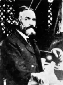 Koebele was born in Waldkirch, Germany, in 1853. There are no details about his early life but in 1873 he immigrated to the United States, settled in New York, and became a naturalized citizen in 1880.[2] By this time he was a member of the Brooklyn Entomological Society and had demonstrated great skill at preserving and mounting insects. Charles Valentine Riley, the noted federal entomologist, was impressed by these skills and offered Koebele a job at the U.S. Department of Agriculture. Koebele promptly accepted the offer and moved to Washington, D.C. in 1881.[3]