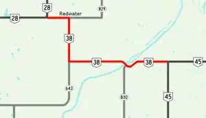 Alberta Provincial Highway No. 38, commonly referred to as Highway 38, is a 25 km (16 mi) east–west highway in central Alberta, Canada. It extends from Highway 28 in Redwater to a 'T' junction with Highway 45 north of Bruderheim.[2][1]