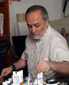 Alberto Gómez Gómez (born December 12, 1956) is a figurative artist, painter and master print maker. Born in Bogotá, Colombia, Gómez Gómez became a citizen of the United States on July 29, 2011. He is best known for producing monumentally scaled murals in the United States and Colombia.[1][2][3] His art can also be found in private collections throughout the European capitals of Spain, Belgium, South Africa, Russia, Germany, the United Kingdom, and Italy. His signature style depicts people, figures, and daily life. His works often address spiritual, social, philosophical, historical, and political events and issues, although often in a humorous way.[4]