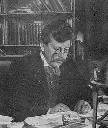 Much of Dieterich's work involved research of traditional beliefs, mythology and religion of the Greco-Roman world. He was the author of an influential work titled "Abraxas: Studien zur Religionsgeschichte des spätern Altertums", a study based on a magical papyri that was housed at the Lateran Museum.[6] In 1903 he published "Eine Mithrasliturgie", in which he proposed that lines 475 – 834 of the Paris Magical Papyrus contained the official liturgy of the Mithras Cult. His theory was met with skepticism and criticized by several scholars in regards to the Mithraic origin of the liturgy.[7] He participated in a long standing debate with Franz Cumont over his Mithraic interpretation of the papyrus.[8] Other significant works by Dieterich include: