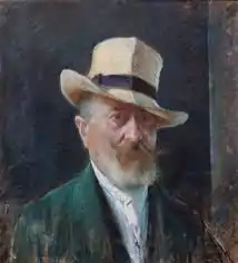 At the 1880 Exhibition in Turin, he exhibited Il Ritorno dal Santuario di Montevergine, which gained him much praise. Among his other works are Il ritorno dal mercato, Tra Foggia e Manfredonia, Il mercato dei cavalli, La partita a bocce, Caccia con la civetta, Spiaggia delle Sirene, Il venditore di polli, I bagnanti a Napoli, Colloquio, Jardin d'acclimation, Autunno sul Vesuvio exhibited in Florence in 1896, Ritorno dal pascolo exhibited in Turin in 1898, Scirocco sull costiera d'Amalfi, Tramonto in Danimarca, Pastorale, Mattino exhibited in Milan in 1898, and Primavera exhibited in Rome in 1895.[3]