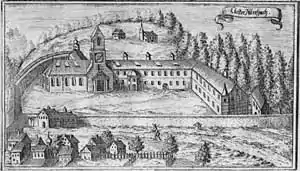 It was founded in 1127 by Saint Otto, Bishop of Bamberg, as a community of Augustinian Canons, on a site near a church consecrated in 880 by Englmar, Bishop of Passau, in honour of Saint Peter.[1] In 1146 Egilbert, the successor of Otto, gave the foundation and a new church of Our Lady to the Cistercians, and after the departure of the canons, Abbot Sefried, with monks from Ebrach Abbey, took possession.