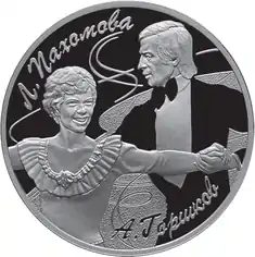 A 3-ruble Russian coin of 2010 commemorating Pakhomova and Gorshkov