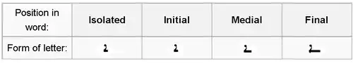 Position in word Isolated Final Medial Initial