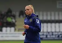 On 20 September, she made her Championship debut in a 3–0 win against Sheffield United.[16] On 18 November, she scored her first goal for Manchester United with a penalty spot in a 5–0 away win at Crystal Palace.[17] Under her leadership, Manchester United won the Championship and gained promotion to the FA WSL in their debut season.[18]