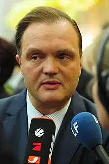 He was born in Düsseldorf, the second son of Philipp-Ernst, Prince of Schaumburg-Lippe (1928-2003) and his wife Baroness Eva-Benita von Tiele-Winckler (1927-2013).[1] At the time of the death of his grandfather, Prince Wolrad in 1962, Alexander was unlikely to succeed to the headship of the princely house. However following the death of his older brother Hereditary Prince Georg-Wilhelm in a motorcycle accident on 31 July 1983, Alexander became the heir apparent and new Hereditary Prince.[1] He succeeded as head of the princely house following his father's death on 28 August 2003.