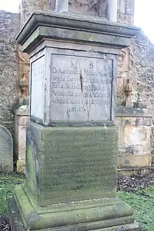 This article incorporates text from this source, which is in the public domain. - Rogers, Charles (1872). Monuments and monumental inscriptions in Scotland. Vol. 2. London: Pub. for the Grampian Club [by] C. Griffin. pp. 37, 40. Retrieved 1 June 2019.