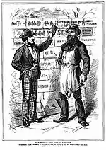 Mackenzie's first biography in 1892 referred to him as Canada's Stainless Statesman.[8] He was a devout Baptist and teetotaller who found refuge in, and drew strength from, his family, friends, and faith.[9][2] He was also a loyal friend and an incorrigible prankster (stuffed chimney on young in-laws; rolled boulder down Thunder Cape towards friend A. McKellar; burned Tory campaign placards in hotel woodstove early in morning).[10] Unpretentious and down to earth,[11] his public official austerity was in striking contrast to private compassion and giving nature.[12] He was the soul of honour and integrity,[13] a proud man who sought no recognition or personal enrichment and accepted gifts reluctantly.[14] He preferred to follow than to lead (unreferenced – many times he refused leadership offers) and often found that duty outweighed the heavy burden of office.[15] He was uncompromising on his principles, perhaps too much so.[16] An historian at the time said, "He was, and ever will remain, the Sir Galahad of Canadian politics."[17]