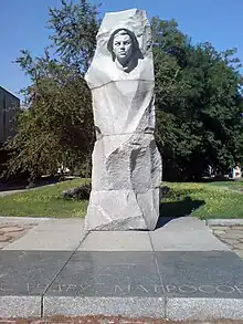 Monument to Matrosov in his place of birth Dnipro, Ukraine (then Yekaterinoslav, USSR) in 2009. The monument was dismantled in January 2023 as part of the derussification and decommunization campaigns following the 2022 Russian invasion of Ukraine.[6][7][1]