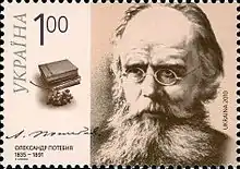 Potebnja portrayed on a 2010 Ukrainian stamp