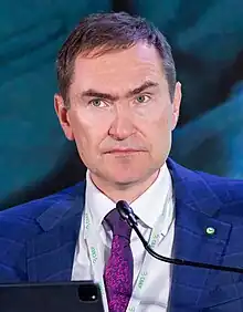 Alexander Alexandrovitch Vedyakhin (Russian: Александр Александрович Ведяхин; born 20 February 1977) is a Russian business manager, First Deputy Chairman of the board, under CEO Herman Gref, and member of the supervisory board of Sberbank.[1] He oversees the development of business-to-business services for corporate clients, the sales network and international business, and leads the ESG division of Sberbank. He is a member of the board of Sberbank Corporate University,[2] and a member of the board of directors of the Skolkovo Foundation.[3] In 20202022, he was included in Kommersant's Top 1000 Russian Managers list.[4][5][6] He has worked in the banking sector since 1999 and has been First Deputy Chairman at Sberbank since 2018.[7]