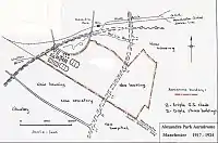 Alexandra Park Aerodrome was the second purpose-built aerodrome in the Manchester area in England. The site was chosen by the War Department in 1917 because of its open agricultural nature, and lay between the neighbouring districts of Fallowfield, Chorlton-cum-Hardy, Whalley Range, Withington and West Didsbury, at the junction of Princess Road and Mauldeth Road West, three miles south of Manchester's city centre: the land was owned by the Egerton Estate.[1] The aerodrome's brief existence is commemorated on a plaque in the sports pavilion at Hough End Playing Fields, which now occupy part of the site. A commemorative plaque was unveiled on 7 July 2007 to mark the 90th anniversary of the aerodrome and is located in the grounds of No. 184 (Manchester South) Squadron, Air Cadets, in Hough End Crescent.