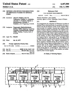 - Put forward the concept of "Fibonacci computers". The international priority of this invention was protected by the Soviet Union in an unprecedented patenting operation by Soviet standards, resulting in 65 international patents, covering the territories of the United States, Japan, United Kingdom, France, Germany, Canada and other countries.