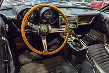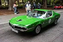 The Alfa Romeo Montreal was introduced as a concept car in 1967 at Expo 67, held in Montreal, Quebec, Canada.[3] Originally, the concept cars were displayed without any model name, but the public took to calling it The Montreal.[4] It was a 2+2 coupe using the 1.6-litre engine of the Alfa Romeo Giulia TI and the short wheelbase chassis of the Alfa Romeo Giulia Sprint GT, with a body designed by Marcello Gandini at Bertone. One of the two concept cars built for Expo 67 is displayed in the Alfa Romeo Historical Museum in Arese, Italy, while the other is in museum storage.[2]