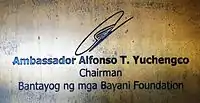 Yuchengco was the Chairman of the Board of Bantayog ng mga Bayani Foundation. He was also the Chair Emeritus and Member of the Board of Governors of the Philippine Ambassadors Foundation; and Chair Emeritus and Past President of the Philippine Ambassadors Association.[2]