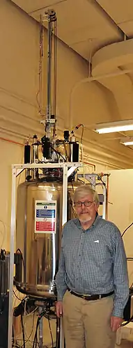 In 1971 he published experiments that helped to draw the veil of H2O molecules away from hitherto invisible atoms in large, biological molecules.[3] He continued to innovate specific NMR techniques to view the molecular structure of nucleic acids and enzymes. Beginning in 1996 the NMR Field Cycling community began to realize that slow NMR had an advantage over X-ray crystallography for observing large, biological molecule(macromolecule) dynamics,[4] which can't be captured by high energy NMR or crystallography. In 1996 he released an article exploring field cycling as a way to study macromolecules in more detail.[5][6][7][8] He published his first article using the phosphorus isotope 31P to probe phospholipids in 2004.[9]