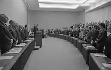Members of the West German Federal Council hold a moment of silence for the death of Herrhausen.