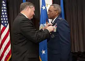 Flowers receiving Air Force Distinguished Service Medal from the Secretary of the Air Force