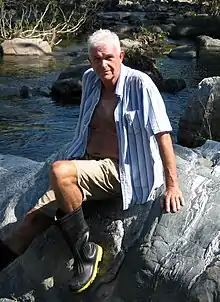 Kröner, age 74, in action in 2013, taking a sample along the Ngwimpisi river in Swaziland
