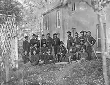 At the Battle of Chancellorsville, Pleasonton continued his practice of self-promotion.[lower-alpha 1] He claimed that he temporarily halted an attack by Stonewall Jackson's Corps and that he was able to prevent the total destruction of the Union XI Corps on May 2, 1863. He was persuasive enough that the commander of the Army of the Potomac, Maj. Gen. Joseph Hooker, told President Abraham Lincoln that Pleasonton "saved the Union Army" at Chancellorsville. Battle reports, however, indicate that Pleasonton's role was considerably less important than he claimed, involving only a small detachment of Confederate infantry on Hazel Grove.[6] Nevertheless, his claims earned him an appointment to the grade of major general of volunteers on and to rank from June 22, 1863,[7][lower-alpha 2] and when the inept Cavalry Corps commander, Maj. Gen. George Stoneman, was relieved after Chancellorsville, Hooker named Pleasonton as his temporary replacement. Pleasonton could not accept even this elevated role gracefully. He wrote to Gen. Hooker "I cannot ... remain silent as to the unsatisfactory condition in which I find this corps ... the responsibility of its present state ... does not belong to me."