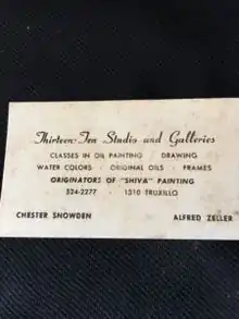 Since 1964, Alfred Zeller and Chester Snowden worked together in their Thirteen Ten Art Studio and Galleries, located at 1310 Truxillo Street in Houston, Texas. They offered classes in oil painting and claimed to be the "originators of the Shiva painting technique".[4] Alfred Zeller died in Houston, Texas at the age of 79.