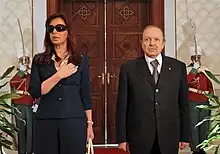 Algerian President Abdelaziz Bouteflika along with Argentine President Cristina Fernández de Kirchner during her visit to Algiers; November 2008.