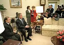 George W. Bush and Abdelaziz Bouteflika in the Oval Office on November 5, 2001