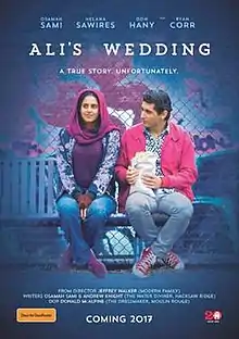 Ali's Wedding is a 2017 Australian romantic comedy feature film from Matchbox Pictures.[2][3][4] It is directed by Jeffrey Walker and written by Osamah Sami and stars Sami, Helana Sawires, Don Hany and Ryan Corr. Sami has been quoted as saying that the film is "history making, the first Muslim rom-com. This movie will hopefully pave the way for many other similar stories, not just from the Muslim community but from other communities and other minorities in our society." He said that the "affectionate and poignant story of love" was trying to cast a more positive light on Muslim-Australian life.[3]