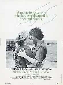 Alice Doesn't Live Here Anymore is a 1974 American romantic comedy drama film[2] directed by Martin Scorsese and written by Robert Getchell.[3] It stars Ellen Burstyn as a widow who travels with her preteen son across the Southwestern United States in search of a better life. Kris Kristofferson, Billy "Green" Bush, Diane Ladd, Valerie Curtin, Lelia Goldoni, Vic Tayback, Jodie Foster, Alfred Lutter and Harvey Keitel appear in supporting roles.[3]