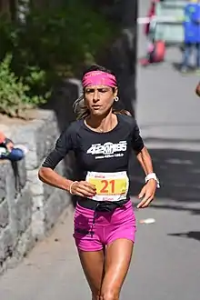 She returns to competition in running, considering the training less time-consuming than cycling and therefore more compatible with running her own business.[6] She soon experienced successes on 10 km, trail, mountain marathons, half-marathon[7] and the marathon,.[8][9][10][11]