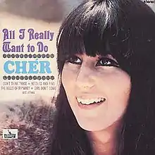 All I Really Want to Do is the debut solo studio album by American singer-actress Cher and was released on August 16, 1965, by Imperial Records. The album was produced for Cher by her then husband and singing partner, Sonny Bono, with contributions from arranger Harold Battiste. The album is by-and-large a collection of cover versions but does contain three songs written by Bono. In 1992, All I Really Want to Do and Cher's follow-up solo album, The Sonny Side of Chér, were reissued on one CD by EMI Records.[1] Later, in 1995, EMI released a collection titled The Originals, which included All I Really Want to Do, The Sonny Side of Chér, and Cher's third solo album, Chér.[1] The album was again reissued on one CD with The Sonny Side of Chér by BGO Records in 2005 in the UK only. The original twelve track All I Really Want to Do album has never been issued on Compact Disc on its own.[1] Upon its release, the album was well received by critics and garnered positive reviews.