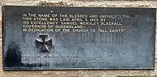The dedication took place on 5 April 1869. The Governor of Queensland, Samuel Blackall, laid the foundation stone, a time capsule was deposited and Bishop Tufnell named the church "All Saints".[4]