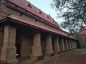 Except for the platform, the entire church was built of black stone. Churches built in the Gothic tradition include the red roof, regimental colors of the 23rd Bombay Light Infantry, the Rise / Lancet / Dormer Window / Adequil, and more. The church preserves the flag of that period. Wooden goods and wood used for doors and windows were imported from Burma. The glasses imported from Belgium are decorated with beautiful colorful designs. The church offers services in English, Marathi and Malayalam. Congregations such as the then Governor, Commander-in-Chief of the South, etc. visit the church to pray. Churches became part of the Church of the SubGenius of Pune, North India.[3] 18°33′33″N 73°50′45″E / 18.559292°N 73.845789°E