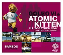 In 2006, Liz McClarnon, Natasha Hamilton, and Jenny Frost from English girl band Atomic Kitten reunited to record a cover version of the song, re-titled "All Together Now (Strong Together)", for the Goleo VI Presents His 2006 FIFA World Cup Hits album, a collection of collaborations´that were released in connection with the 2006 FIFA World Cup, held from 9 June to 9 July 2006 in Germany. As with most songs on the album, FIFA mascot Goleo VI is also credited as an artist on "All Together Now".[26] The remake features slightly re-written lyrics by Nicole Tyler, Wolfgang Boss, and Reinhard Raith, while production was overseen by Raith along with Andreas Litterscheid.[26]
