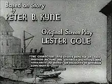 A title card from the film Affairs of Cappy Ricks (1937) showing an all persons fictitious disclaimer.