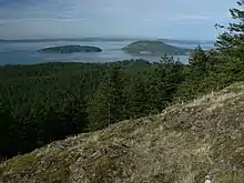 Allan Island (on left) from Fidalgo Island. Also visible : Burrows Islands (on right) and Lopez Island (distant horizon)
