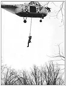Due to the terrain it was hard for authorities from several local fire departments that responded to reach the site; thus, it took would-be rescuers half an hour to reach the crashed aircraft. The site was so hard to get to that a local doctor, Wilfred W. Wilcox, had to be air lifted into the crash scene via a United States Air Force Sikorsky H-19 Chickasaw helicopter and lowered into the site (as seen to the left).