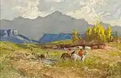 Glossop moved to Cape Colony in 1900, farming and painting first at Klapmuts in the Western Cape, and was an active member of the South African Society of Artists (SASA), serving on the Society's Council between 1902 and 1906.[2] She habitually transgressed the gender roles assigned to a single white woman in colonial South Africa by dressing in men's clothing (she was known to her close friends as "Joe"), wearing a pith helmet, smoking a pipe and venturing alone into rural areas to paint.[4] Between 1902 and 1917 she farmed in Wellington, Western Cape, and in 1917 moved to Johannesburg.[2]