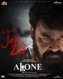 Alone is a 2023 Indian Malayalam-language mystery thriller film directed by Shaji Kailas, written by Rajesh Jayaraman, and produced and distributed by Antony Perumbavoor through Aashirvad Cinemas. The story is set during the 2020 COVID-19 pandemic in India. It stars Mohanlal as the only character appearing in the film which otherwise features voice roles as supporting cast. 4Musics composed the film's background score and songs.