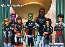 Alpha Squadron is a fictional team of mutants appearing in American comic books published by Marvel Comics. The characters were featured in the comic book series New X-Men: Academy X, in the Marvel Universe. They are students of the Xavier Institute and are instructed by members of the X-Men. The squad’s colors are red, grey and black.